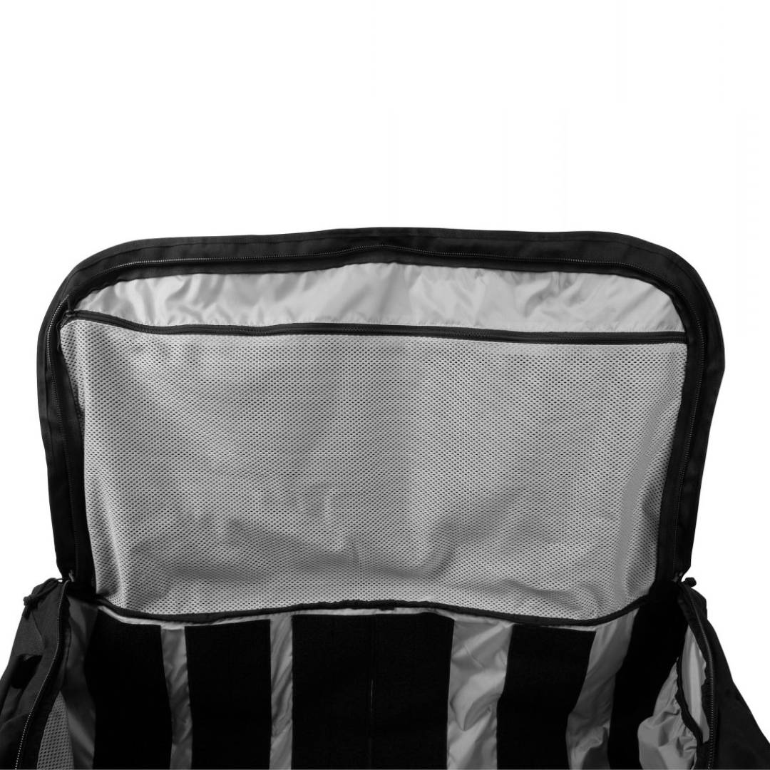 Large deployment trolley with optimized aluminum frame and large wheels. 155-liter volume.