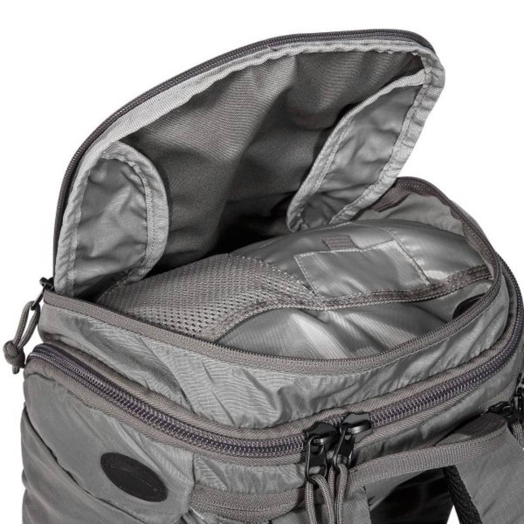 Modular backpack with innovative, ventilated X Vent Zero Plus carrying system. The front opening of the backpack pulls up completely. The insides have hook-and-loop sections for individual features. The backpack has elastic outer pouches, a lid pouch and reduced laser-cut MOLLE on the front.