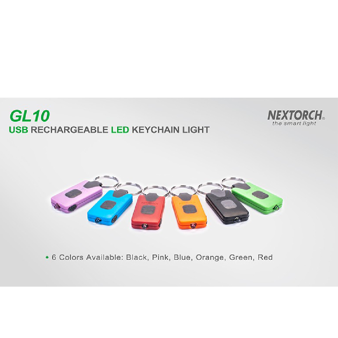 NEXTORCH brand new GL10 USB rechargeable LED keychain light is light, convenient, and no bigger than a stick of chewing gum! Weighing only 13g, the compact and lightweight GL10 has a built-in rechargeable Li-ion battery, rechargeable up to 500 times, making it economical and environmentally-friendly. The stainless steel key ring hitches to your backpack, keys or other items for everyday carrying.