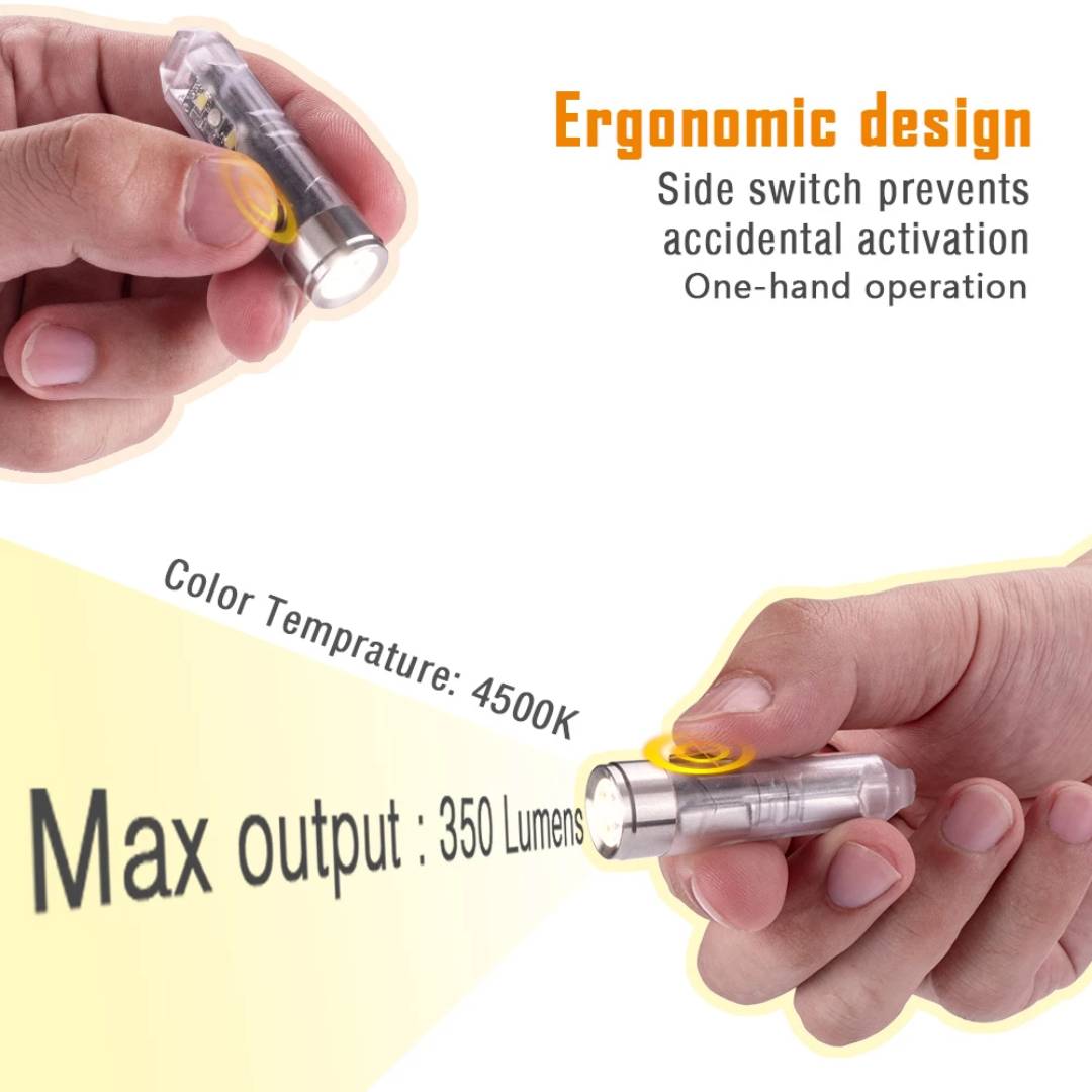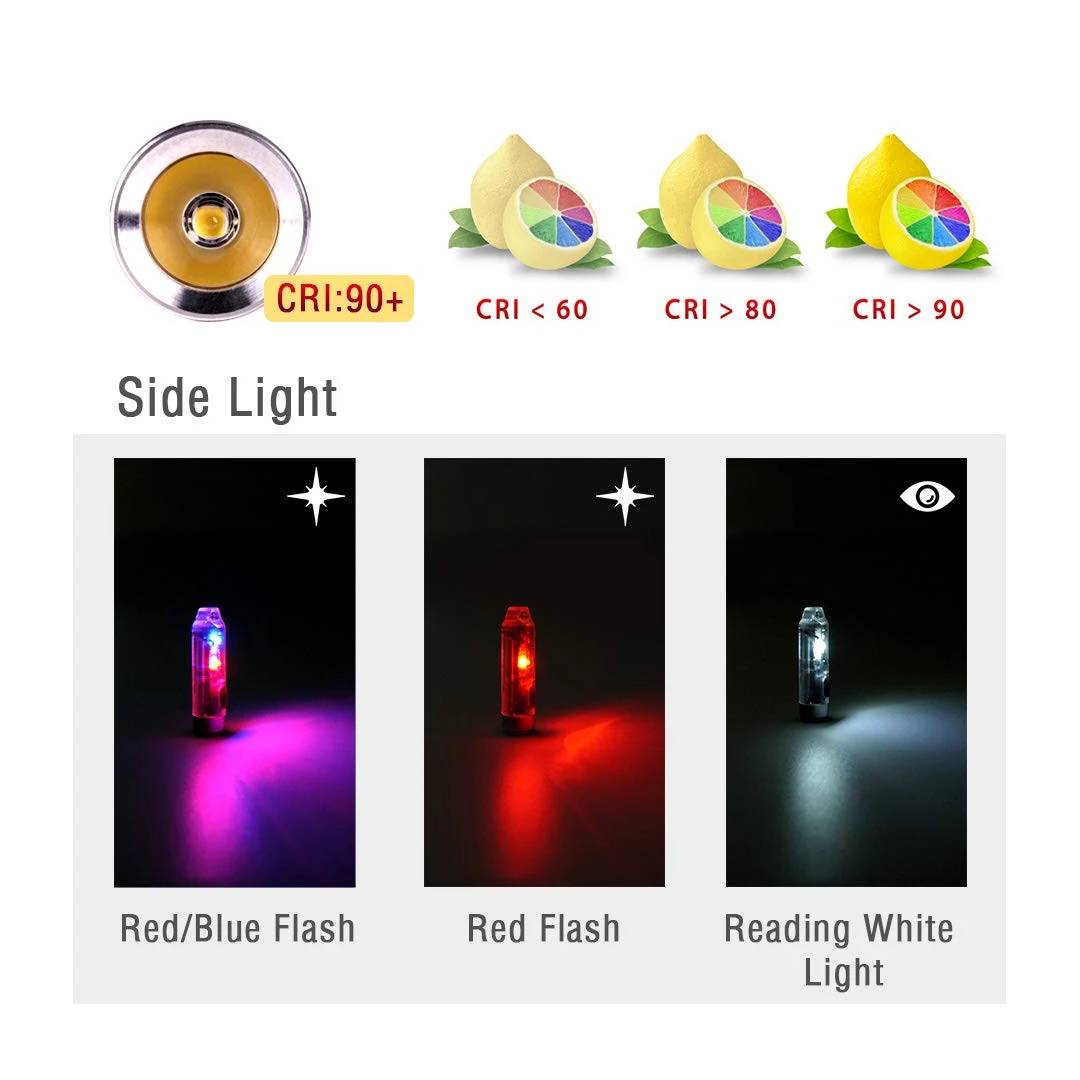 The Aurora A6 has a 4500K tint and a CRI of at least 90 thanks to the Nichia 219C R9050 LED. It is made of transparent polycarbonate which is lightweight and durable. The sidelights make the A6 practical, the white one could use as a lantern reading light and the red/blue ones could be an alert light like the police light.