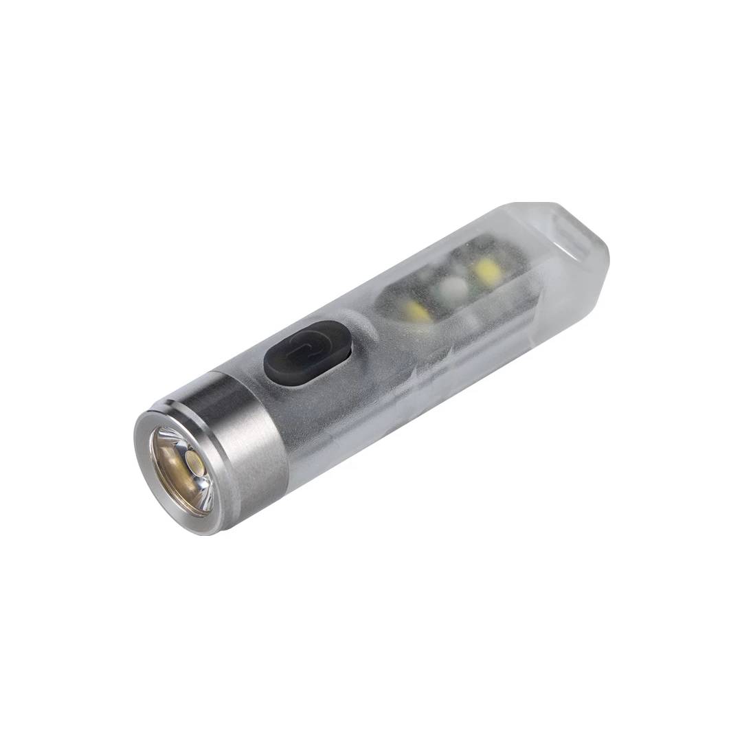 The RovyVon Aurora A7 has a max output of 550 lumens* and is made of polycarbonate combined fluorescence powder which makes the A7 glows in the dark (Sky blue). The UV sidelight makes it no need an external light source to make the body glows and the white sidelight could use as a reading light or flash beacon light.